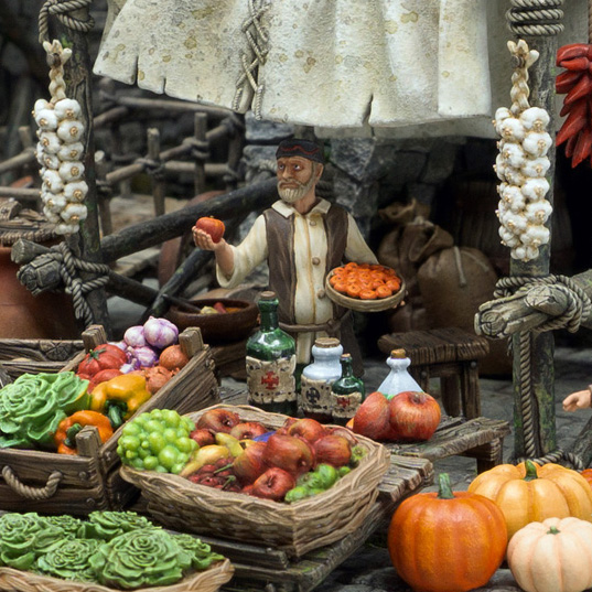 Most common stall in the medieval market. Resources are scarce and mouths to feed are many. Some grain for porridge and some vegetables for brew should be available for all townsfolk.